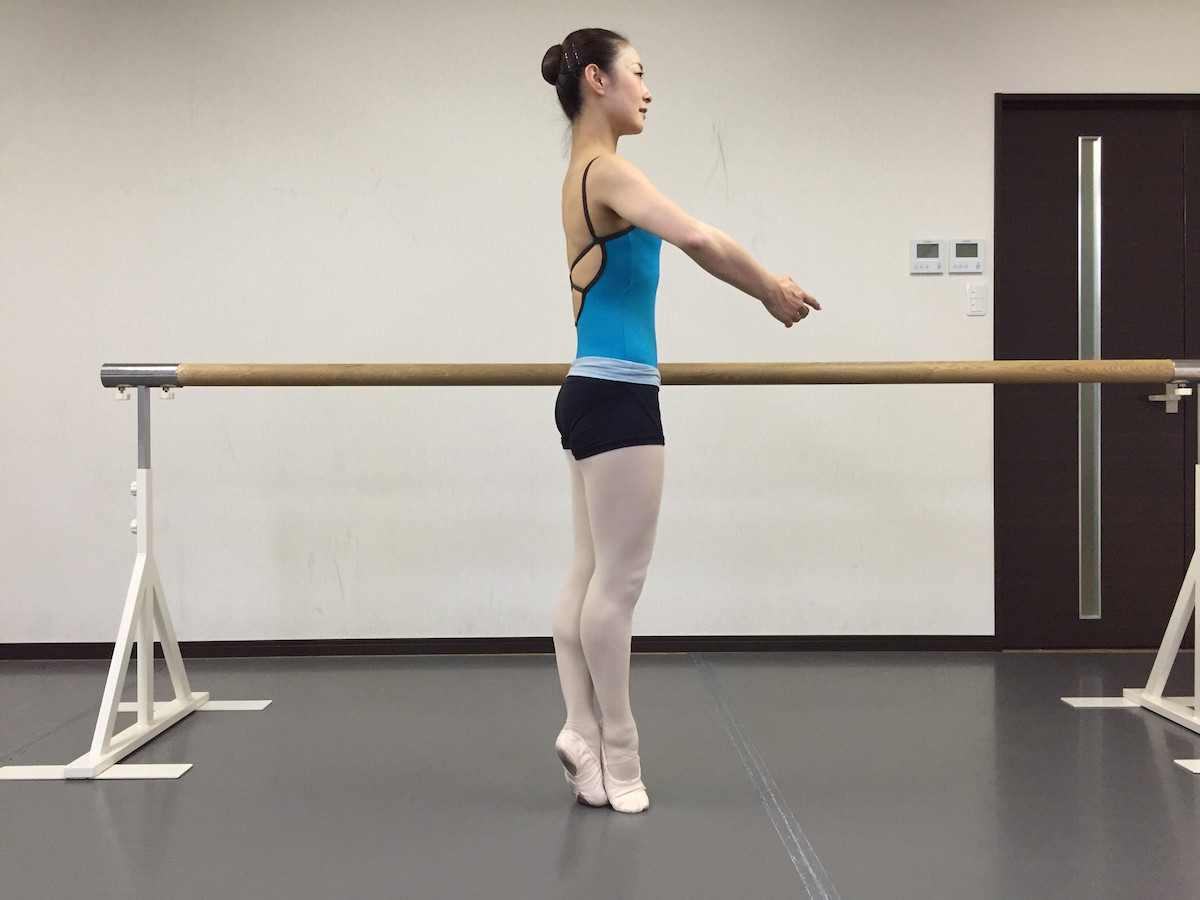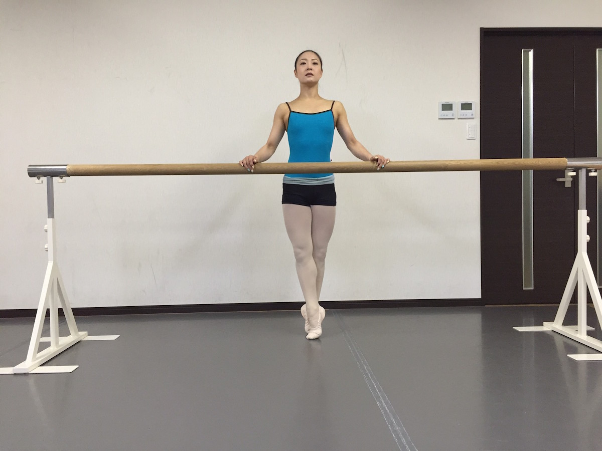 シュ・スーの際に「上体の引き上げ」「足で床を押す」「ターンアウト」の3つの調和が取れると、バランスをとる時にグラグラしにくいでしょう。もちろん、バランスをとるには足首の強さも必要になってきます。(足首の強さはタンデュやルルヴェ、その他エクササイズで養いましょう)