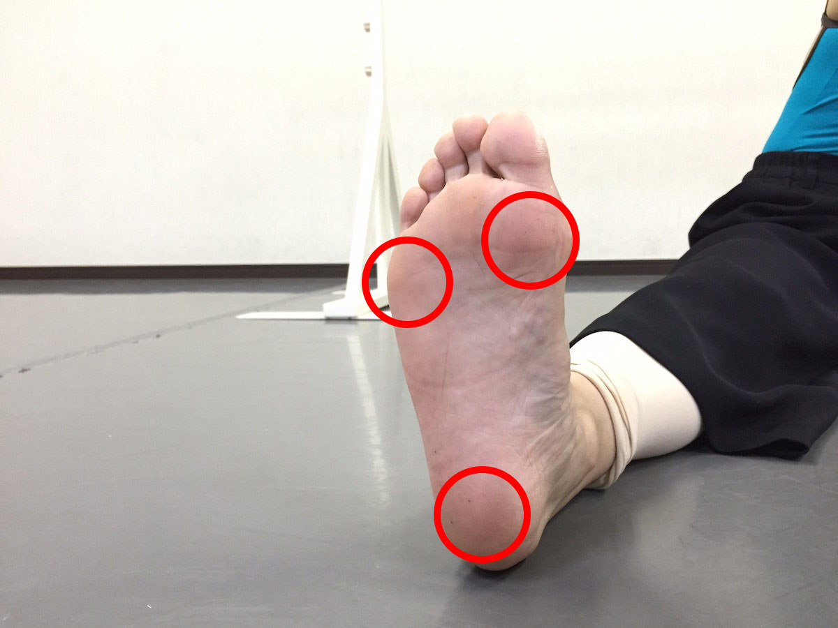 次に足の3点で床を押します。足の3点とは拇趾球・小趾球・踵のことです。